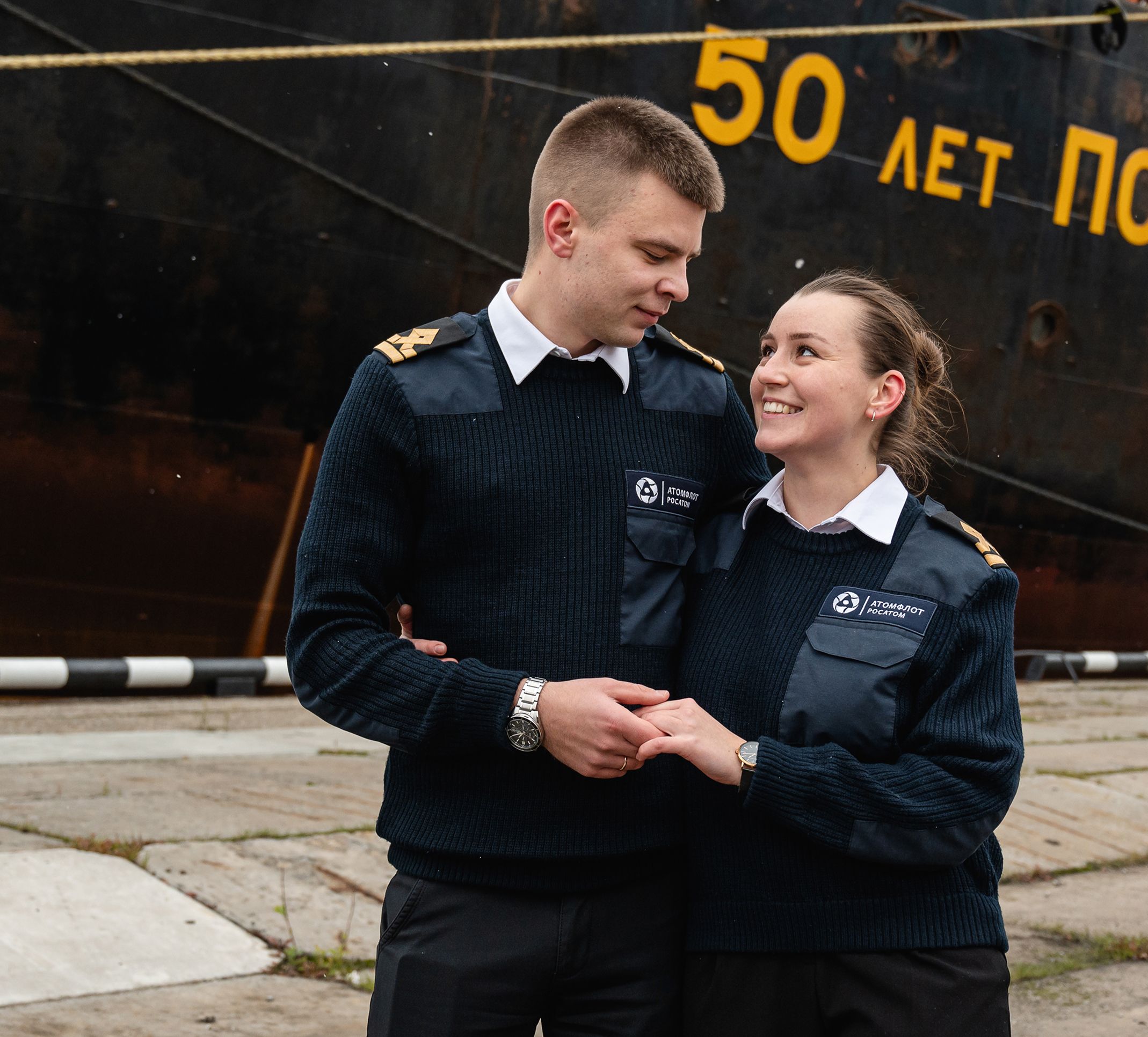 Третьи помощники капитана «Ямала» Никита Трифонов и Любовь Будникова тоже познакомились в рейсе. В мае этого года сыграли свадьбу. Им работа на одном судне не мешает, а помогает: супруги поддерживают друг друга, решая сложные навигационные задачи. Да и расставаться надолго не приходится.